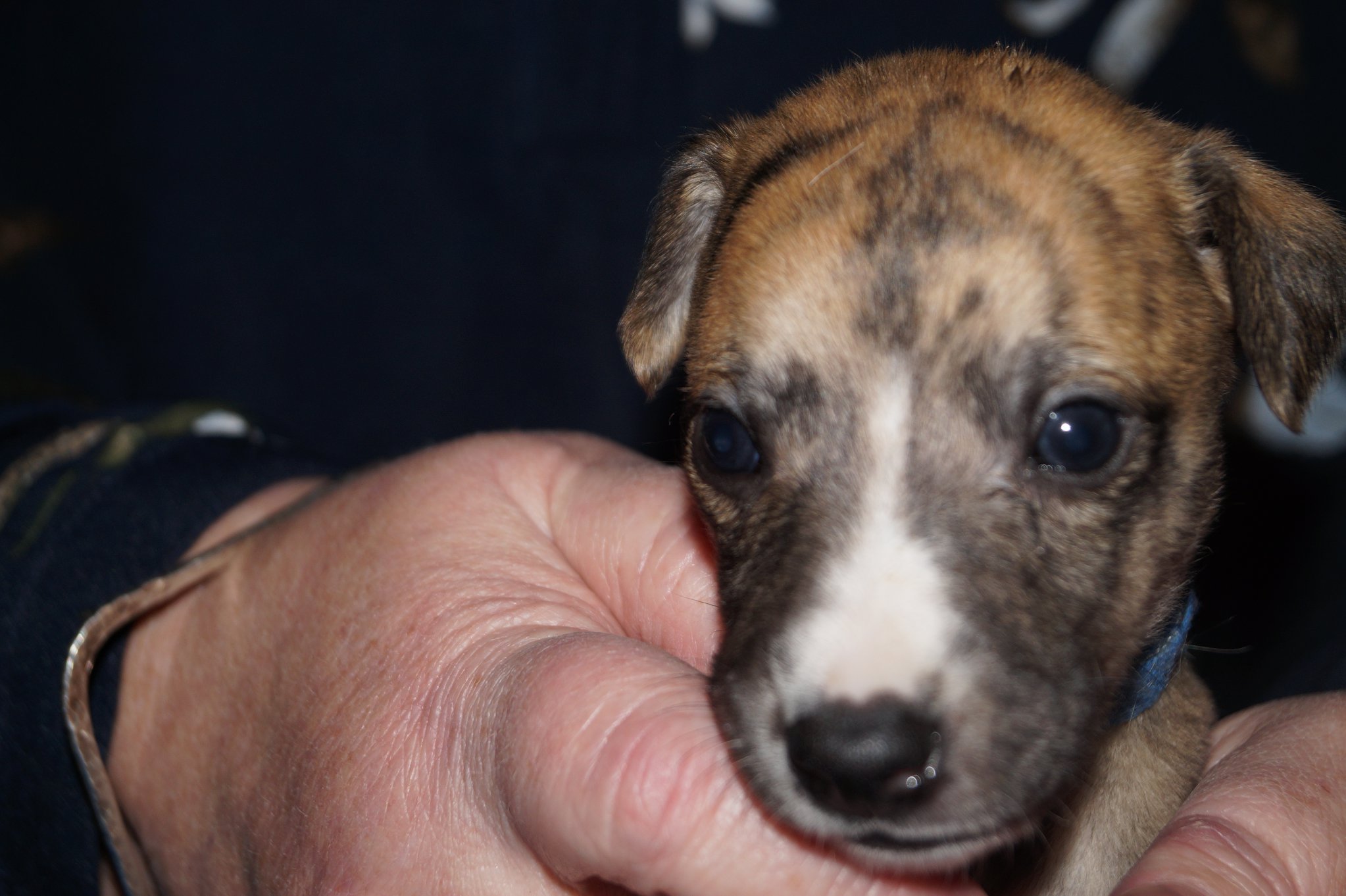 Hvalpene er nu 22 dage. De kravlede ud af hvalpekassen for 3 dage siden, så nu er den flyttet og de kan nu, hvor de er kommet op på benene, dog stadigvæk lidt usikkert, være i hele hvalpegården. Vores andre hunde (fem Whippet & en Affenpinscher) kan nu frit gå og komme hos dem. De voksne kommer ret hurtigt ud, når hvalpene tro de kan få mad hos dem. Der er nu en del reserve mødre som passer og vasker dem.