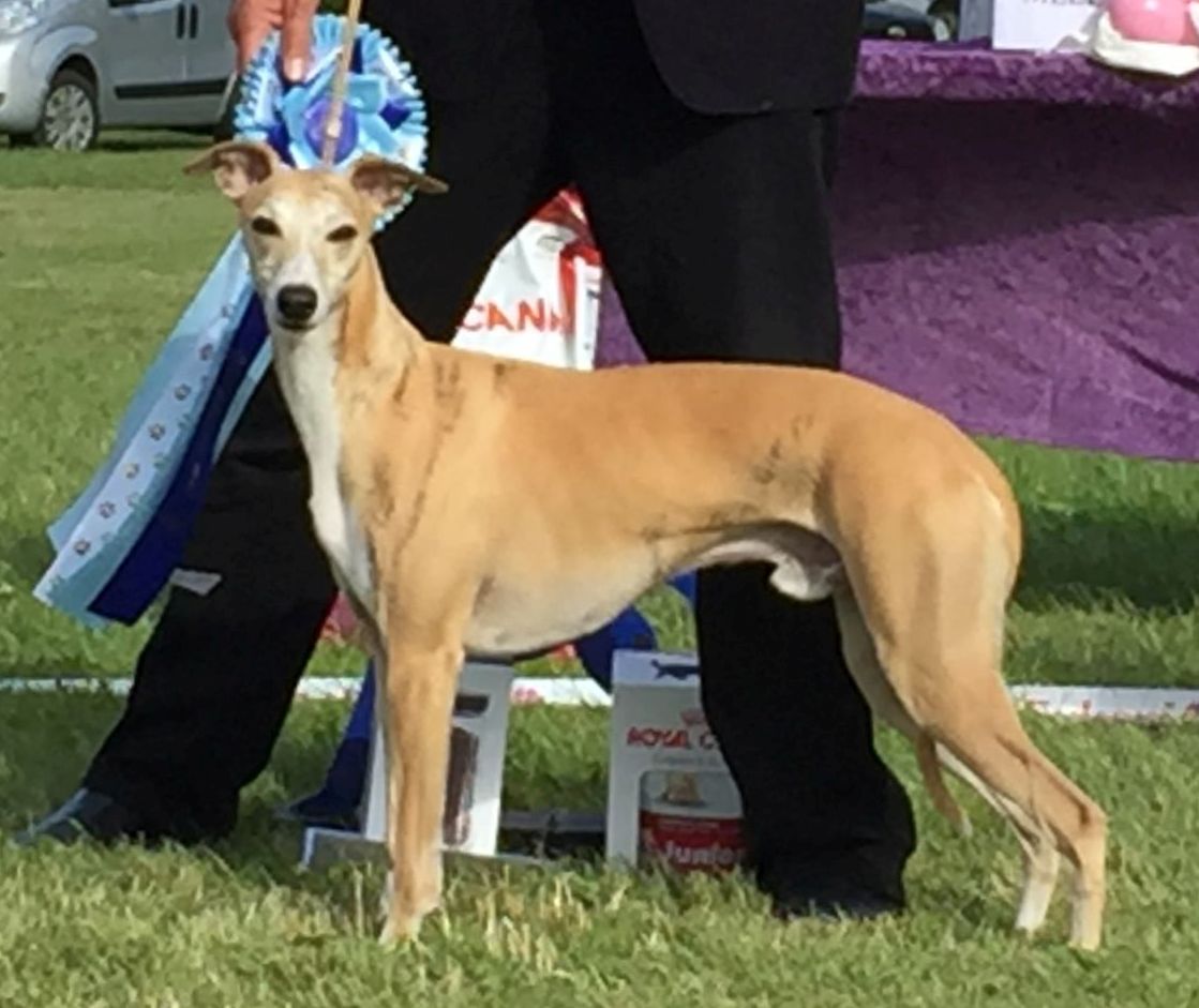 Jineau Off Icer called Icer – or Icer-basse is 3 ½ years old born in Belgium, we chose him because he, in our opinion had a great pedigree and because the kennel he came from was known as serious breeders with healthy typical whippets.